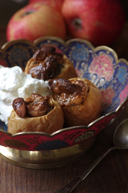 Seekord uuristasin õuntelt sisu välja ja täitsin need rosinate ja pähklite ning karamelliseeritud kondenspiimaga. Oi kui head need said, eriti koos vahukoorega! Võib-olla annan ahjuõuntele siiski teise võimaluse 🙂