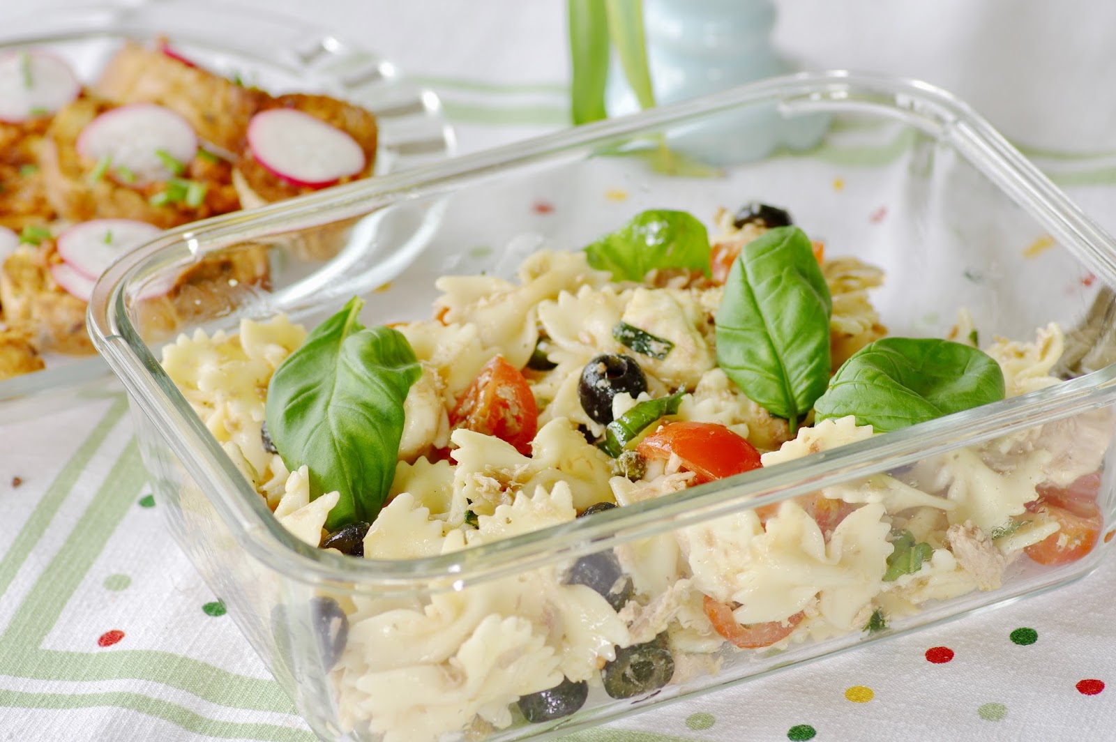 Salati tegemiseks kasutasin farfalle makarone ehk lipsukujulisi makarone. Kastmeks kasuta kindlasti kvaliteetset oliivõli ja tuunikalakonservi. Olen kasutanud ka veega tuunikala, sellisel juhul tuleks oliivõli lisada rohkem. Lisaks läksid salatisse oliivid, kapparid, basiilik, mozzarella ja esimesed kodumaiseid kirss-tomateid Intsu talust.